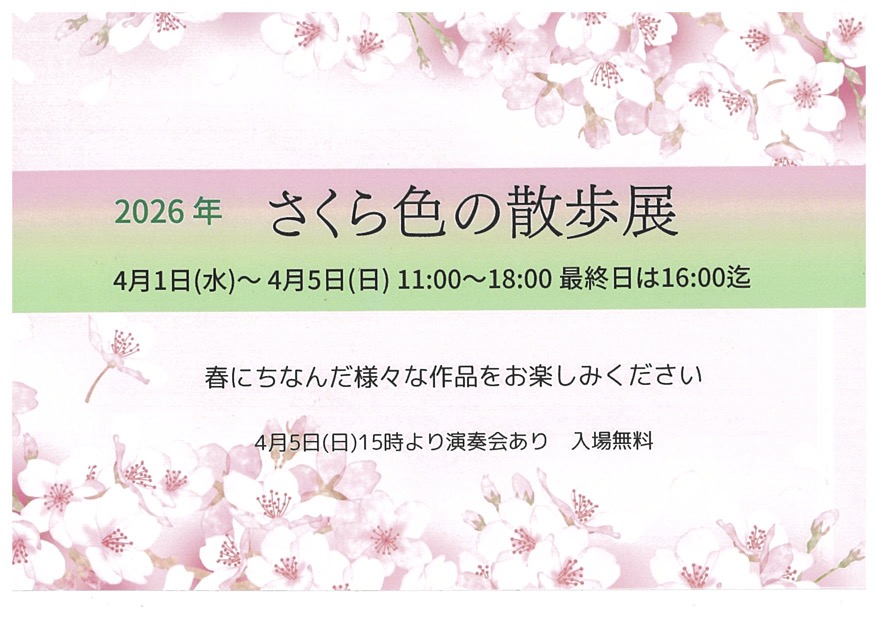 今回の作品展では唯一の書作品となっております。春にちなんだ作品・桜にまつわる作品が目白押しなので是非ご覧ください。